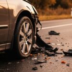 Wypadek w Bolszewie: most zablokowany po kolizji Mercedesa z barierkami